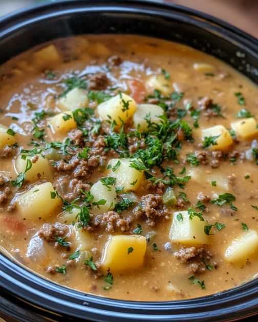 Cheeseburger soup is a delightful fusion of two all-time family favorites – cheeseburgers and a cozy bowl of soup! This recipe is perfect for those chilly Midwestern evenings when you crave something hearty yet comforting. Plus, using a slow cooker means minimal kitchen time and more moments spent with your loved ones. It’s a hit with both kids and adults alike, making it an excellent choice for family dinners or potlucks.