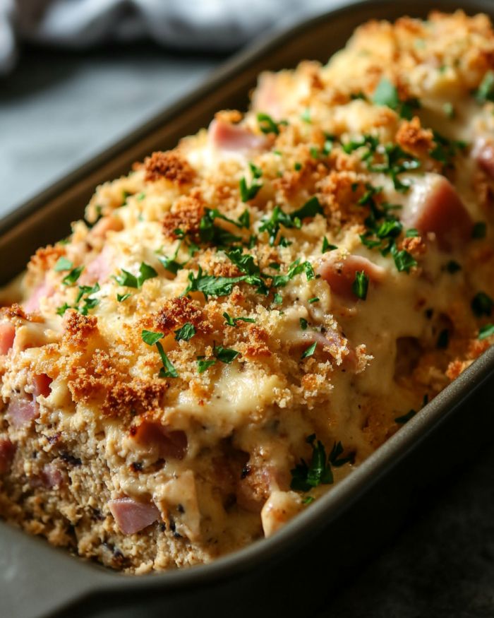 Combining the richness of southern cuisine with the European elegance of Chicken Cordon Bleu, this meatloaf captures the best of both worlds. Traditionally, Chicken Cordon Bleu consists of chicken breasts stuffed with ham and cheese, breaded, and then baked to perfection. By transforming this beloved dish into a meatloaf, you not only simplify the preparation but also offer a hearty, comforting meal that’s perfect for family dinners or a cozy night in. The blend of flavors and textures in this dish makes it a standout choice for anyone looking to impress or simply enjoy a delightful twist on a classic.