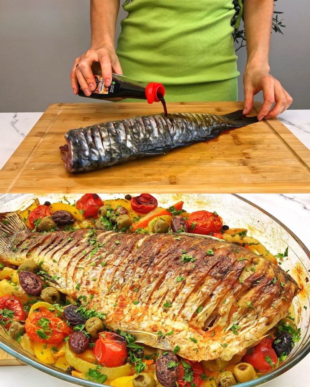The star of this dish is the tender, succulent carp, which absorbs the marinade’s rich flavors and pairs well with the natural sweetness of the roasted vegetables. Not only is this meal delicious, but it’s also healthy, packed with essential nutrients from the fish and the colorful array of vegetables.
