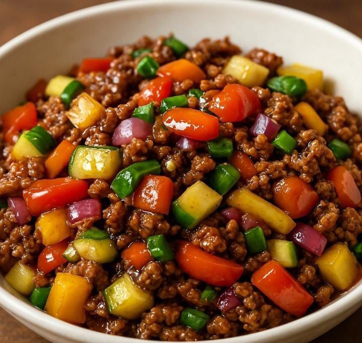 Envie d’un dîner rapide, coloré et nutritif, prêt en moins de 30 minutes ? Ce sauté de bœuf aux légumes est idéal pour les soirs de semaine chargés. Riche en poivrons croquants, tomates juteuses, concombre croquant et bœuf haché savoureux, ce plat déborde de texture et de saveur.