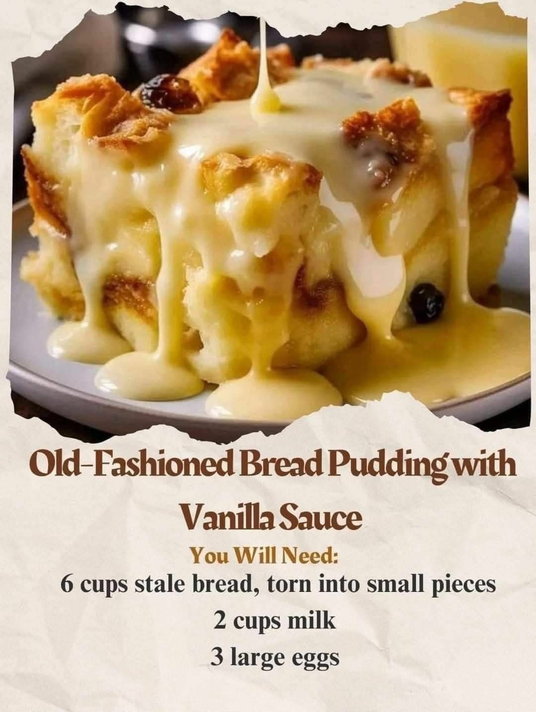 Old Fashioned Bread Pudding with Vanilla Sauce – Don’t LOSE this recipe