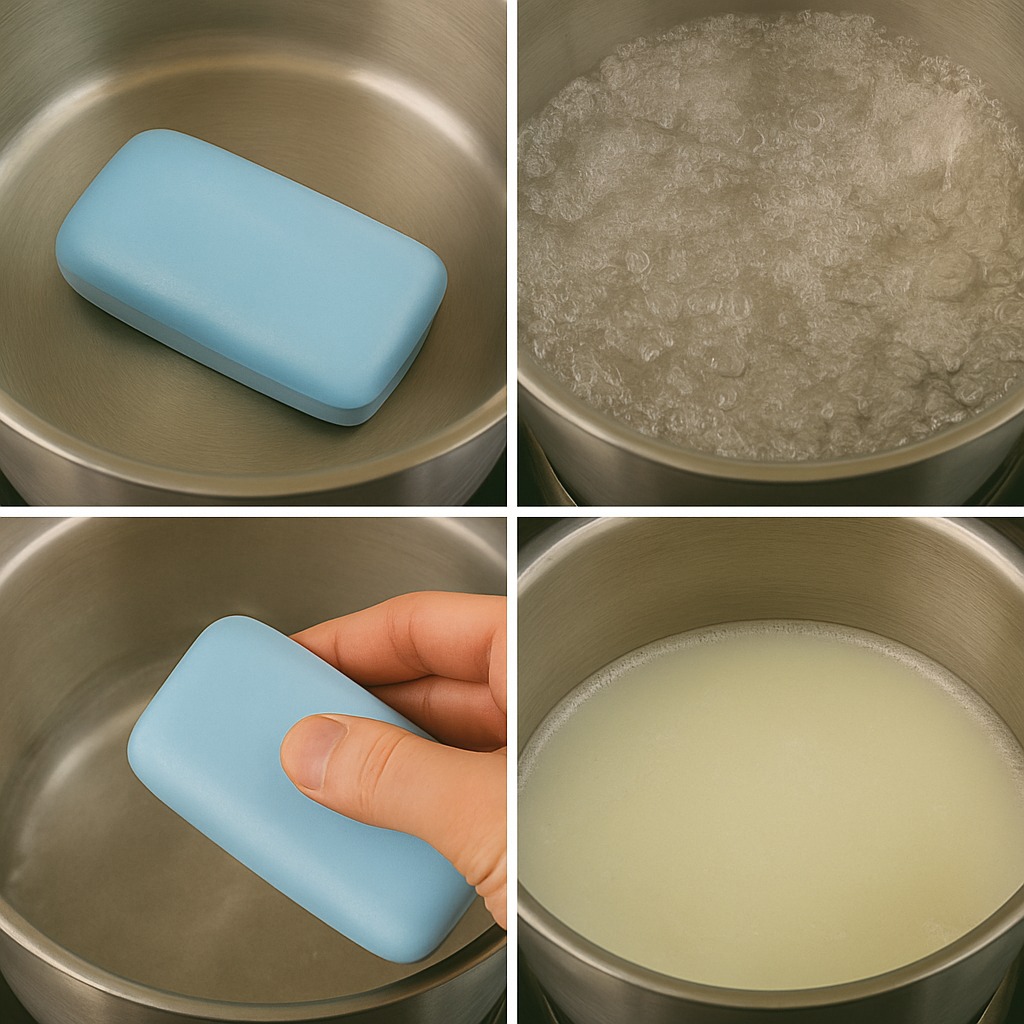 Gather a few simple ingredients – a bar of soap or leftover scraps, water, a large pot, and optionally a grater. If you have a full bar, grate it into small pieces to speed up the dissolving process. Heat the water in a pot until it boils, then slowly add the grated soap or scraps while stirring continuously. Let it simmer for 10-15 minutes until the soap completely dissolves. Once cooled, transfer the solution to a bottle or container for storage.