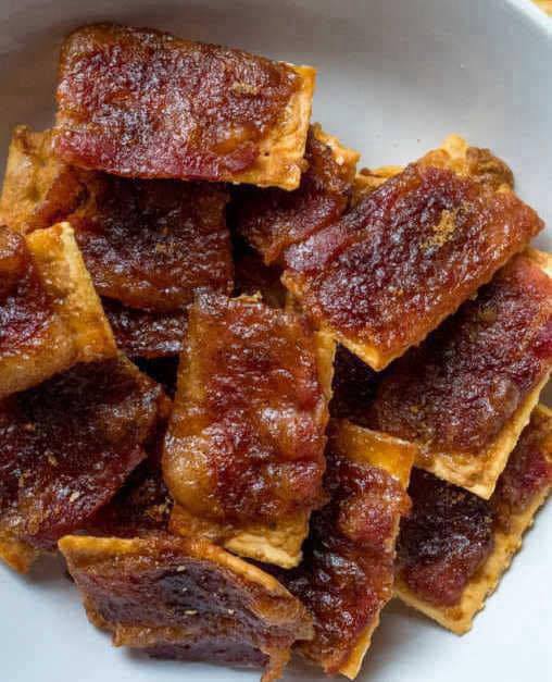 This recipe for Candied Bacon Crackers is a simple yet incredibly flavorful appetizer. The sweet and salty combination of the candied bacon on top of crispy crackers is irresistible.