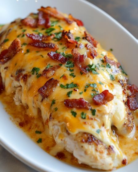 Alice Springs Chicken is a delightful dish inspired by the famous Outback Steakhouse. It’s a perfect blend of crispy, gooey, and juicy textures that make it a family favorite. This dish combines tender chicken breasts with a savory honey mustard sauce, topped with melted cheese and crispy bacon. It’s a comforting meal that brings the taste of a restaurant right to your home, perfect for a cozy family dinner or a special occasion.