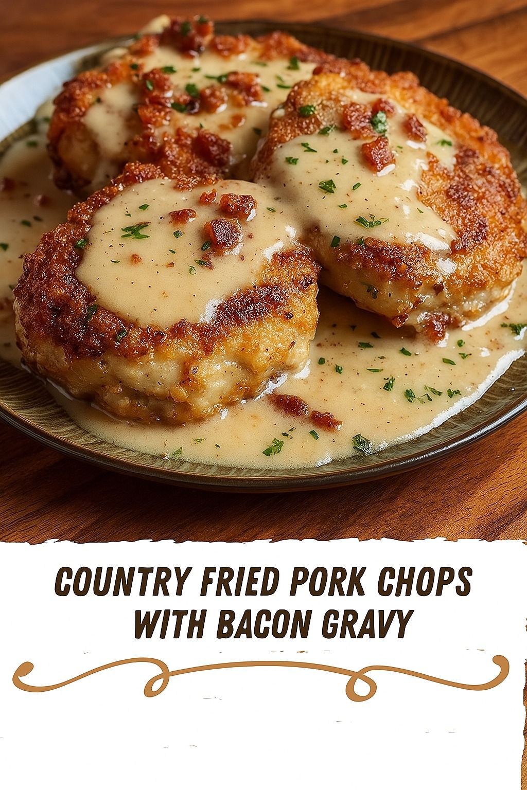 Si vous avez envie d’un plat réconfortant du Sud à son meilleur, ces côtelettes de porc frites à la sauce bacon sont faites pour vous. Croustillantes à l’extérieur, juteuses à l’intérieur et nappées d’une sauce crémeuse et fumée au bacon, ce plat est copieux et savoureux, parfait pour un dîner convivial.