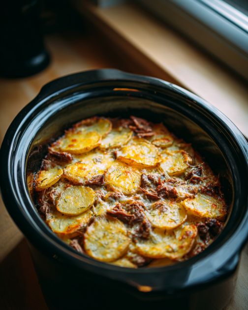 In the hustle and bustle of our daily lives, finding time to cook a hearty, comforting meal can be a challenge. This slow cooker hearty beef and potato casserole is a lifesaver, especially for those busy weekdays when you want to come home to a warm, delicious meal. This dish has its roots in traditional Midwestern comfort food, combining tender chunks of beef with creamy potatoes and gooey cheese for a dish that’s as satisfying as it is simple to prepare. It’s perfect for family dinners or when you want something cozy and filling.