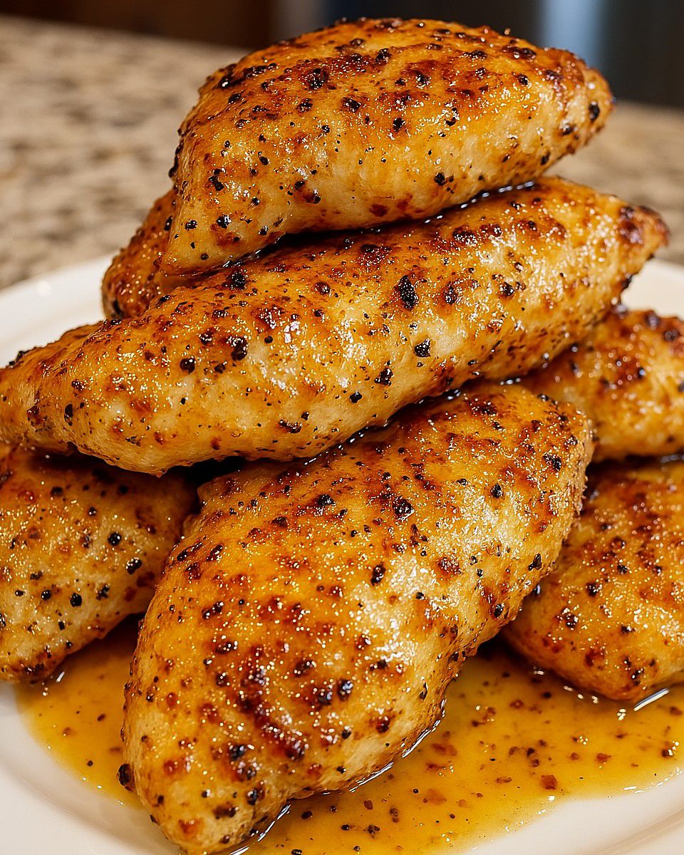 Filets de poulet au beurre et au miel à l’ail, frits à l’air