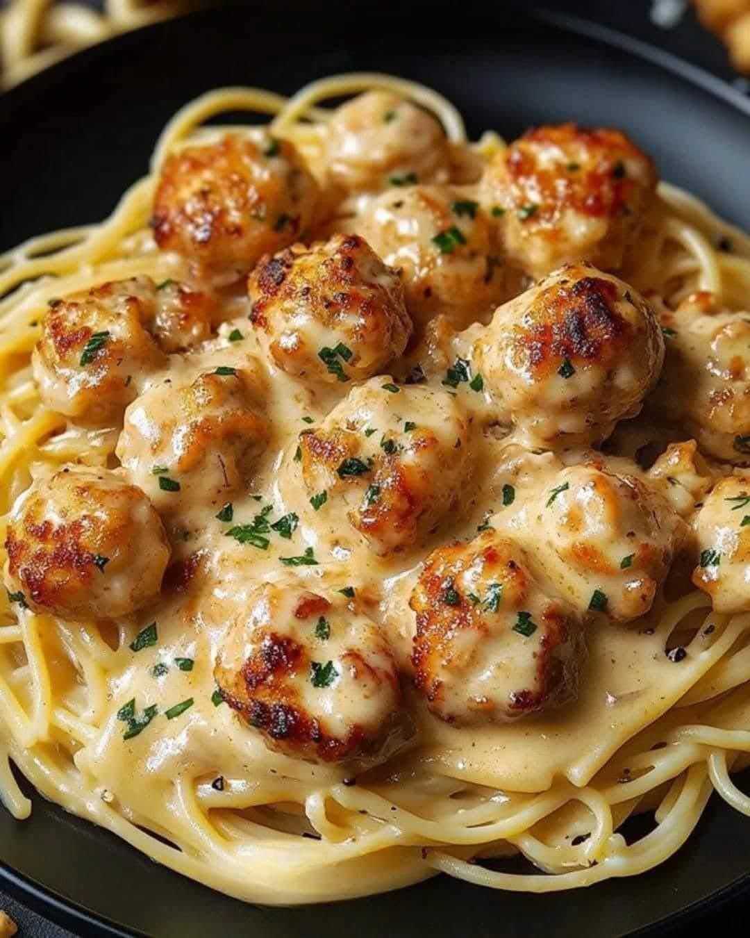 Garlic Butter Chicken Bites with Creamy Parmesan Pasta