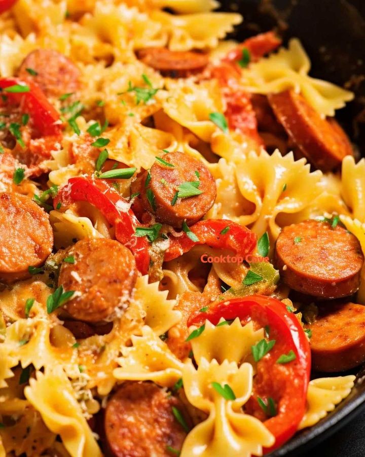 Cajun Shrimp Pasta with Sausage, known for its bold flavors and hearty composition, is a delicious fusion of Southern and Cajun cuisine. The dish brings together the zesty and spicy notes of Cajun seasoning with the succulent taste of shrimp and the smoky, rich flavor of sausage. Bowtie pasta, with its interesting shape, not only adds a touch of whimsy but also holds onto the perfectly balanced creamy sauce. Originating from the Louisiana region, this dish epitomizes the vibrant cultural melting pot with influences from French, West African, and Native American cooking traditions. It is a fantastic representative of comfort food that has gained popularity not just in the United States but all around the globe.
