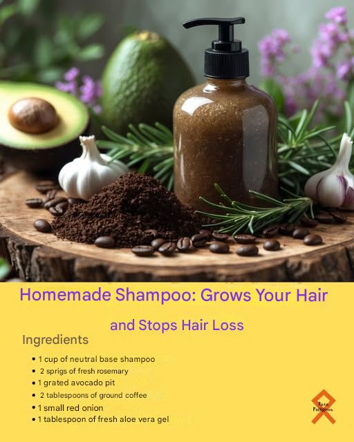 An excellent alternative is to prepare a homemade shampoo with natural ingredients that strengthen the hair from the root, promote growth and help reduce hair loss. This shampoo combines the power of rosemary, coffee, avocado pit, red onion and vitamin E, creating a formula rich in nutrients and antioxidants to revitalize the scalp and stimulate the growth of stronger, healthier hair.