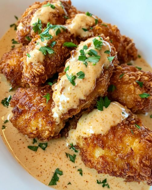 Southern fried chicken is a dish that carries with it the heart and soul of Southern cooking, a tradition that has been passed down through generations. This particular recipe, paired with a creamy Cajun sauce, brings together the crispy, golden goodness of fried chicken with the rich, spicy flavors of Cajun cuisine. It’s a dish that speaks of family gatherings on warm summer evenings, where stories are shared and laughter fills the air. Whether you’re looking to recreate a taste of home or explore the comforting flavors of the South, this recipe is sure to bring joy to your table.