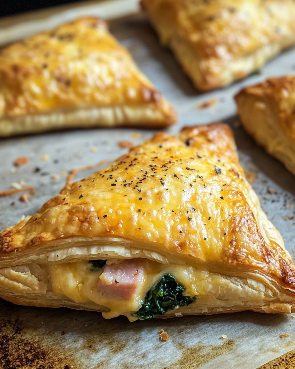 Baked ham and cheese puffs are a delightful treat that harken back to the days when my grandmother would whip up something special for Sunday brunch. These flaky, cheesy, and savory bites are perfect for any gathering or a cozy afternoon snack. Using frozen puff pastry makes them accessible and easy to prepare, while the addition of chopped spinach adds a touch of freshness and color. This dish is a wonderful blend of traditional Midwestern flavors with a hint of modern convenience.