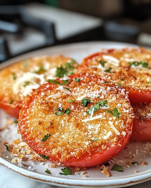 Herb-Infused Fried Red Tomatoes with Parmesan