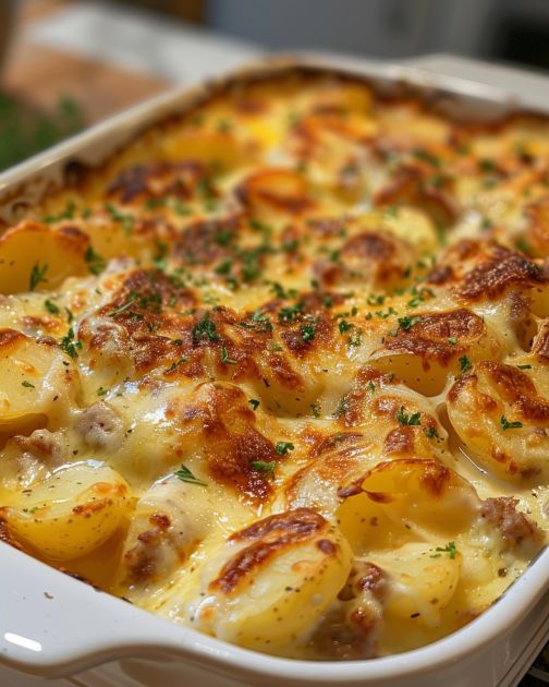 This Creamy Sausage and Potato Casserole is a beloved comfort dish in our household. Perfect for those cold Midwestern evenings, this casserole combines tender potatoes, savory sausage, and a creamy sauce, making it a hearty, one-dish meal that’s sure to please the whole family. It’s a great option for potlucks or family gatherings, where the warmth and flavor will bring everyone together.