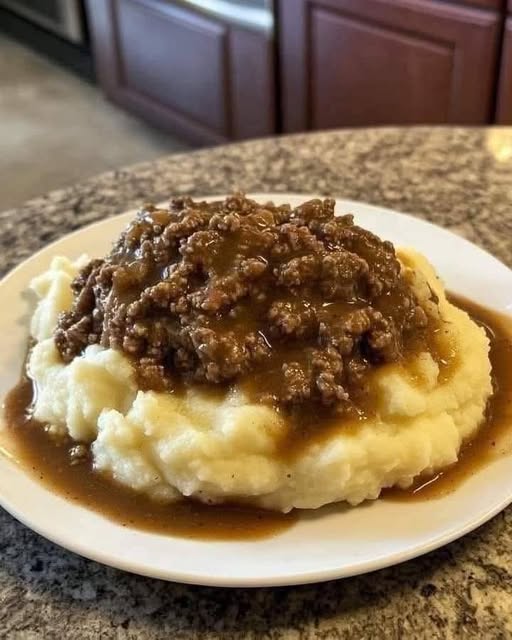 Mashed Potatoes with Ground Beef Gravy (Classic Comfort Food)