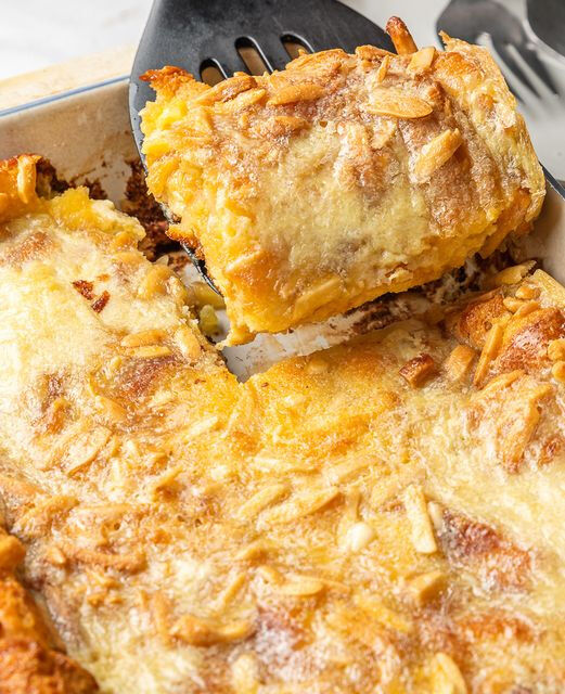 This Amaretto Bread Pudding elevates the classic comfort dessert with the rich, nutty flavor of Amaretto liqueur and crunchy slivered almonds. Soaked bread is baked in a sweet custard and then topped with a warm, boozy Amaretto sauce, making it an indulgent treat perfect for a special occasion.