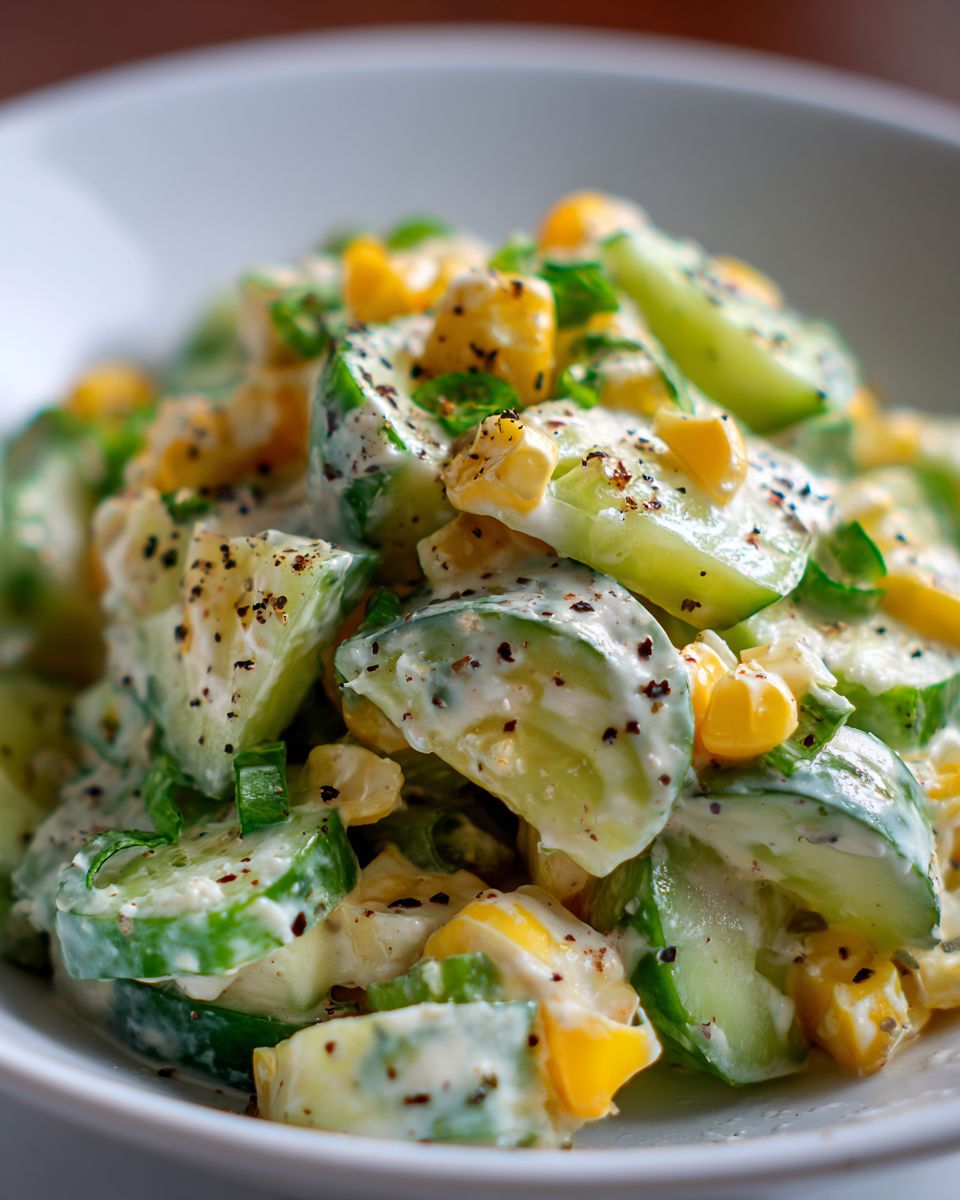 This cucumber and corn salad pairs wonderfully with grilled meats like chicken or steak. It also complements traditional Southern dishes such as fried chicken or barbecue ribs. For a lighter meal, serve it alongside a simple grilled salmon or as part of a picnic spread with sandwiches and fresh fruit.