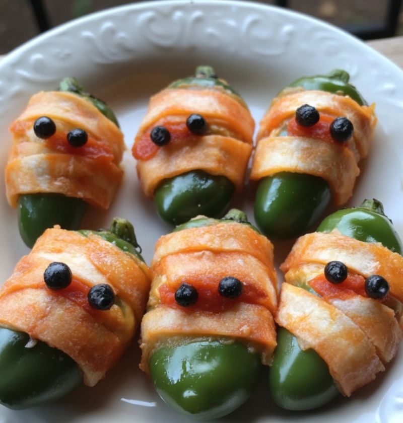 Jalapeño Popper Mummies are a delicious and festive appetizer that will add some heat to your Halloween or any other spooky-themed party. These adorable little mummies are made with jalapeño peppers stuffed with a creamy cheese filling and wrapped in flaky puff pastry. The combination of the spicy peppers, gooey cheese, and crispy pastry creates a mouthwatering treat that is sure to impress your guests.