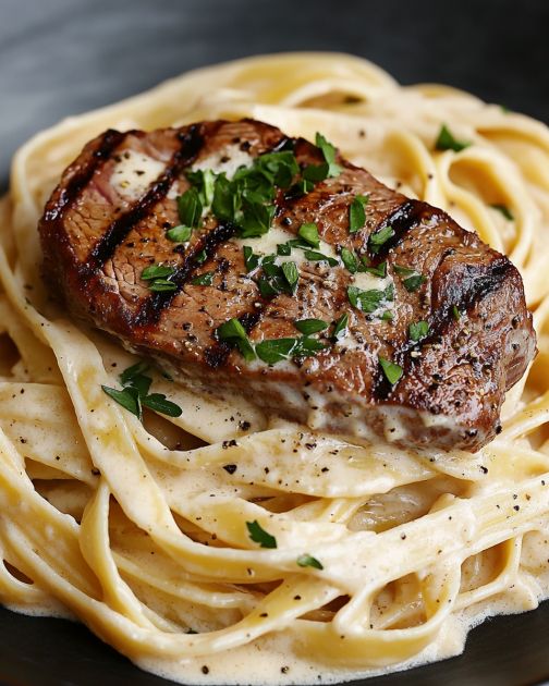 Fettuccine Alfredo with grilled beef fillet is a comforting dish that marries the rich, creamy flavors of traditional Italian pasta with the hearty, robust taste of Midwestern beef. This dish is a nod to the classic Italian-American cuisine that has found its way into many family gatherings and Sunday dinners. The creamy Alfredo sauce, with its roots in early 20th-century Rome, pairs beautifully with the grilled beef, offering a satisfying meal that warms both the heart and the soul. It’s a dish that brings together the best of both worlds, perfect for those who appreciate the simplicity of pasta and the depth of a well-cooked steak.