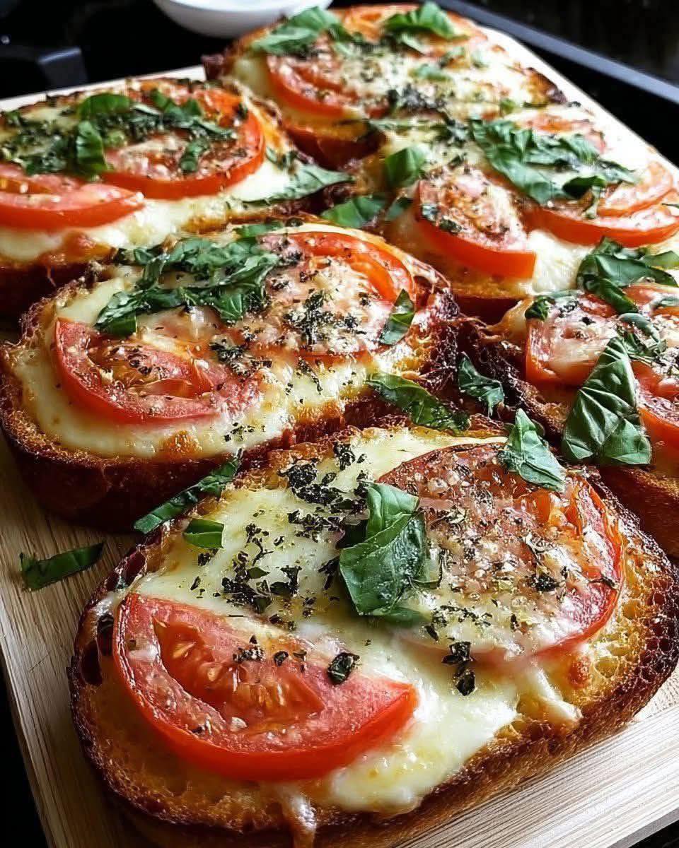 The combination of fresh tomatoes, basil, garlic, and cheese on crispy bread is simply irresistible. Think of it as a cross between bruschetta and pizza toast — but even easier!
