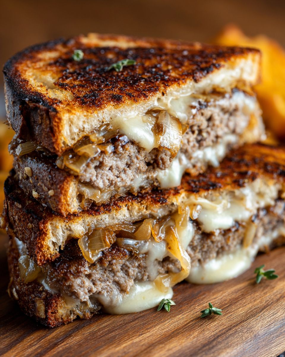The Savory Rye Melt with Secret Sauce is a delightful twist on the classic patty melt, a staple in diners across America. This sandwich combines the rich flavors of juicy beef patties, caramelized onions, and a blend of Swiss and cheddar cheese, all nestled between crispy buttered rye bread. The secret sauce, a tangy blend of mayonnaise, ketchup, sweet pickle relish, and Worcestershire sauce, elevates this dish to a whole new level. Perfect for a cozy dinner at home or a weekend lunch, this recipe is sure to become a family favorite.