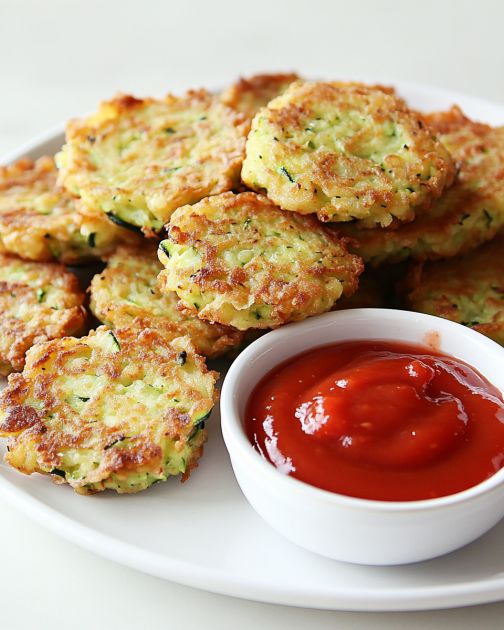 These crispy zucchini fritters are incredibly versatile and can be served as a snack, appetizer, or side dish. They pair wonderfully with a fresh garden salad or some roasted vegetables for a light meal. If you’re looking for something heartier, serve them alongside grilled chicken or fish. For a dipping sauce, you can’t go wrong with classic ketchup, but they also taste amazing with a dollop of sour cream or a spicy aioli.