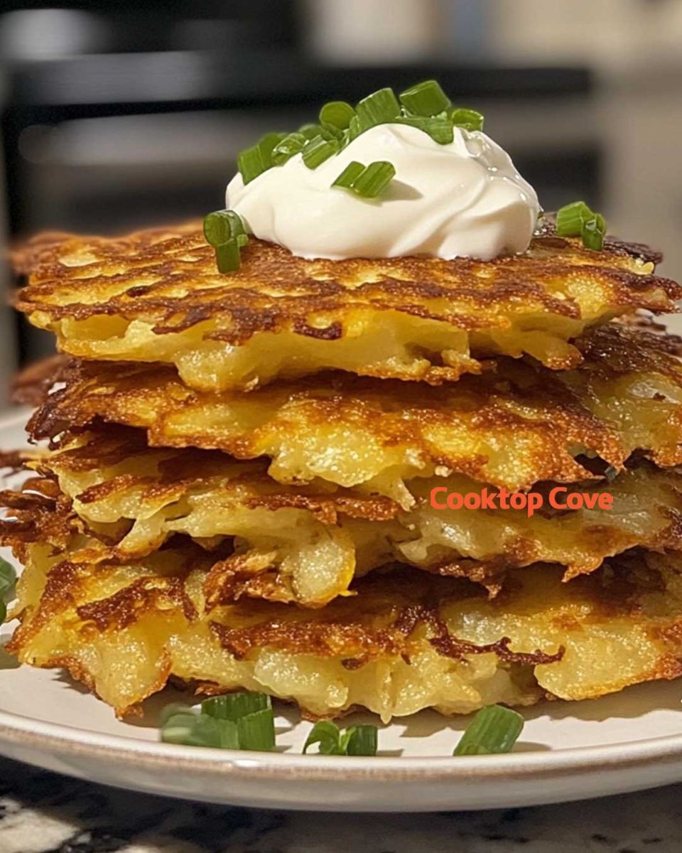 Crispy Potato Fritters pair wonderfully with a variety of sides. For a fresh contrast, serve them alongside a crisp green salad tossed in a light vinaigrette. If you’re in the mood for something more traditional, a dollop of sour cream or a side of tangy sauerkraut complements the fritters beautifully. For a more indulgent option, try topping them with smoked salmon or serving them with a side of applesauce for a sweet and savory combination.