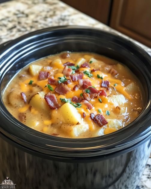 Slow cooker loaded baked potato soup is a comforting dish that brings the essence of a classic baked potato into a warm, creamy soup. Originating from the humble potato, a staple in many cuisines, this soup combines the rich flavors of bacon, cheese, and sour cream, making it a hearty meal perfect for chilly days. It’s an excellent choice for busy individuals who want a delicious homemade meal without spending hours in the kitchen, thanks to the convenience of a slow cooker.