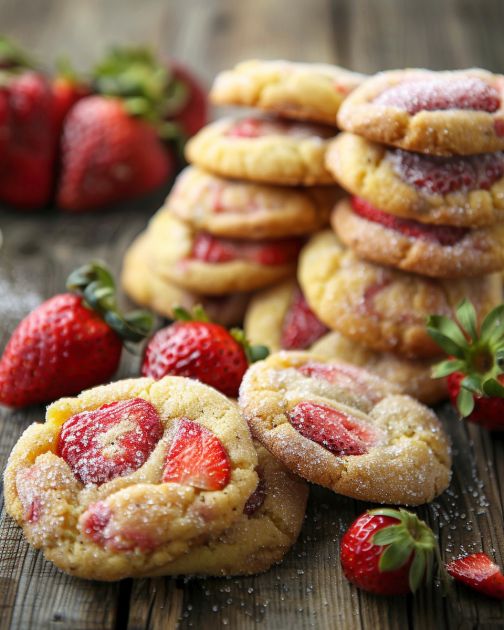 These cookies are superb on their own, but you can always elevate the experience. Serve them alongside a cold glass of milk, or if you’re feeling indulgent, with a scoop of vanilla bean ice cream. They make delightful partners to a cup of afternoon tea or a strawberry lemonade if you really want to double down on the fruity theme.