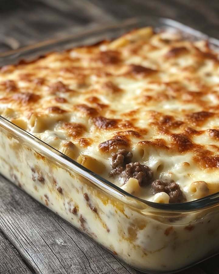 Beef Alfredo Ziti Casserole