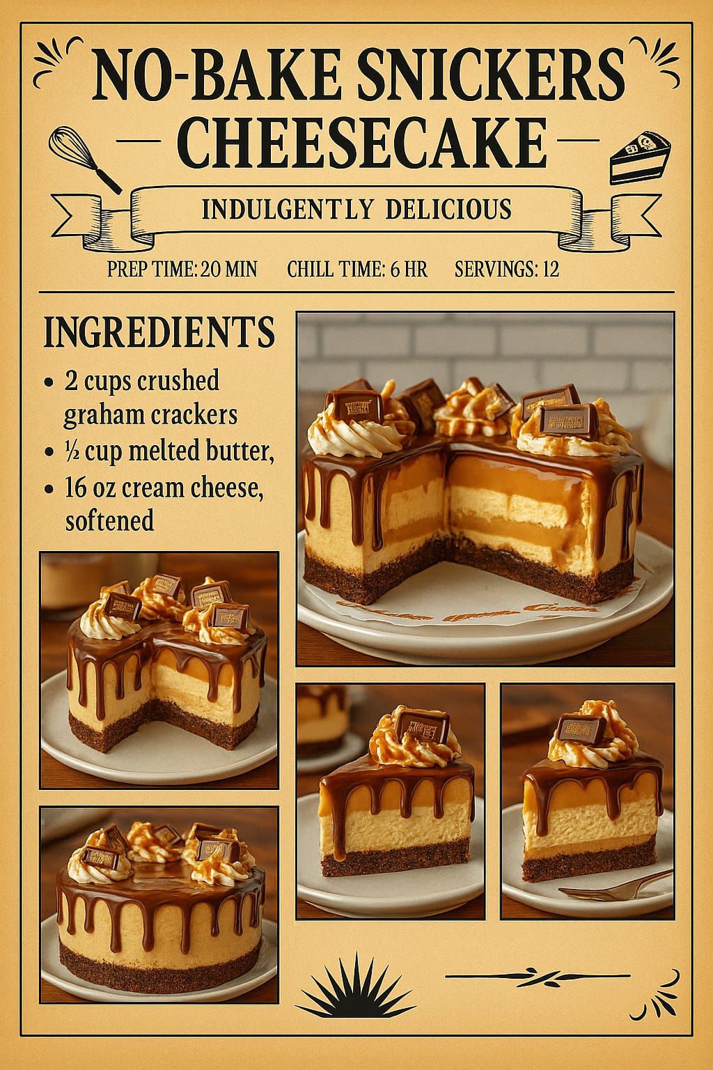 Before we delve into the steps of making this scrumptious no bake Snickers cheesecake, let’s gather all the necessary ingredients: