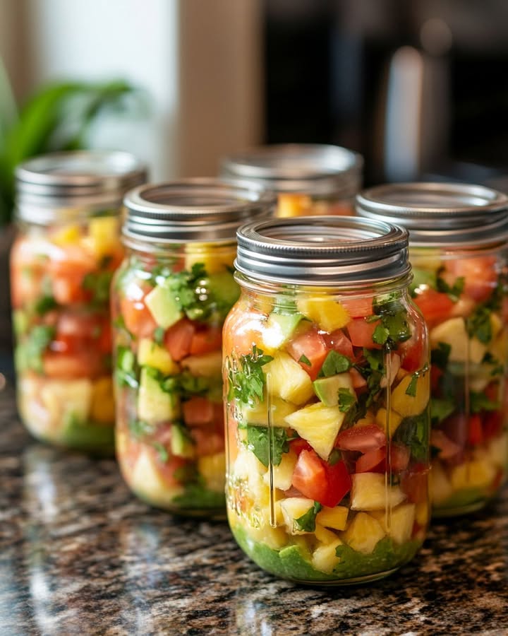 This tropical pico de gallo pairs wonderfully with crispy tortilla chips for a light snack or appetizer. It’s also a fantastic topping for grilled chicken or fish, adding a burst of flavor and color. For a complete meal, serve it alongside a bowl of rice and black beans, or use it to top your favorite tacos or salads. The fresh, zesty flavors complement a variety of dishes, making it a versatile addition to any meal.