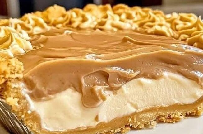 This appears to be a Peanut Butter Cream Pie with a creamy peanut butter layer and a rich, smooth filling. Here’s a simple recipe you can try to recreate this pie: