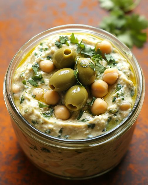 This cilantro olive chickpea dip is a delightful blend of flavors that brings together the heartiness of chickpeas with the bright, fresh taste of cilantro and the briny goodness of olives. It’s a recipe that harks back to the days when simple ingredients were transformed into something special with a bit of love and creativity. In the Midwest, where I grew up, we often relied on pantry staples like chickpeas and olives to create dishes that were both nourishing and satisfying. This dip is perfect for those who want a taste of tradition with a modern twist, and it’s sure to be a hit at any gathering.