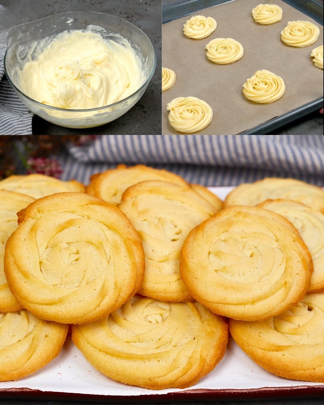 These cookies are similar to homemade Danish butter cookies and are also known as old-fashioned butter cookies. Made with lots of butter, the cookies are soft and melt in the mouth. Because the dough is soft, it’s easy to shape into rose forms. You can experiment with other piping tips to create all kinds of shapes and designs!
