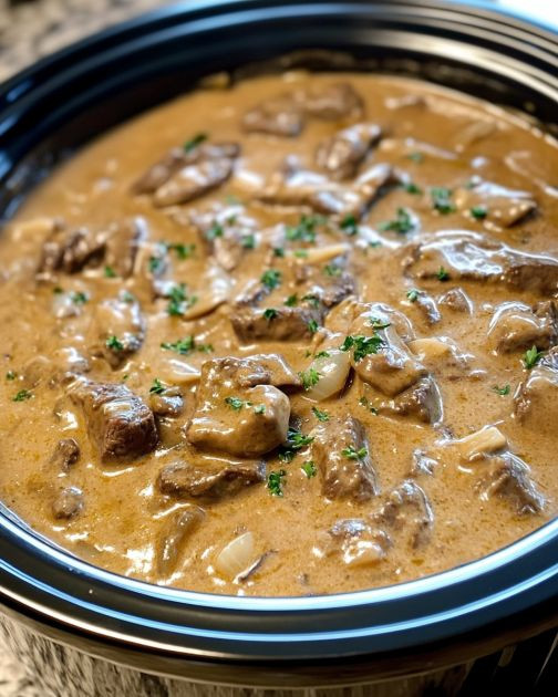 Slow Cooker 4-Ingredient Beef Stroganoff Pasta
