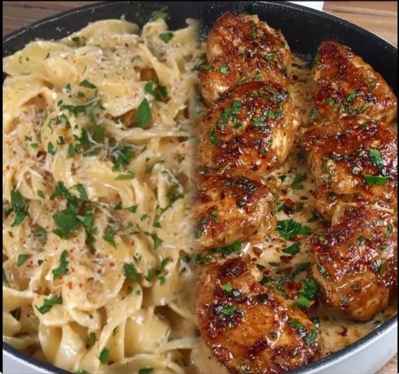 Tender Garlic Butter Chicken Bites & Creamy Parmesan Pasta Delight