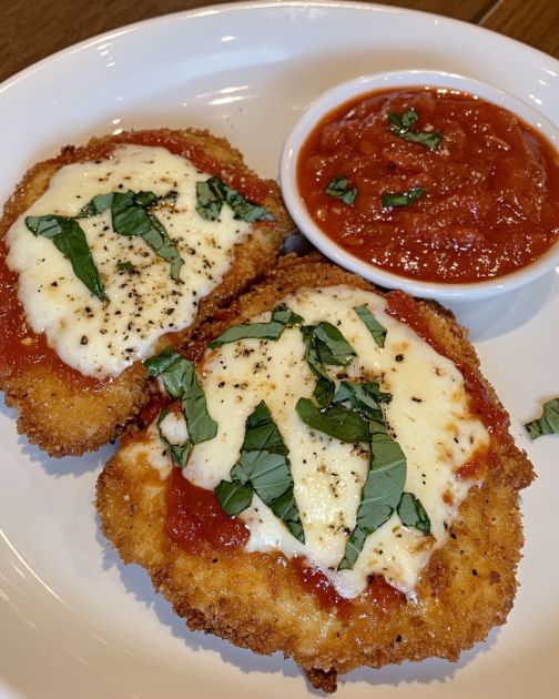 Chicken Parmesan pairs beautifully with a side of spaghetti tossed in olive oil and garlic or a fresh green salad with a tangy vinaigrette to balance the richness of the dish. For a more indulgent meal, consider serving it with garlic bread or a creamy risotto. A glass of Chianti or a crisp white wine like Pinot Grigio complements the flavors wonderfully.