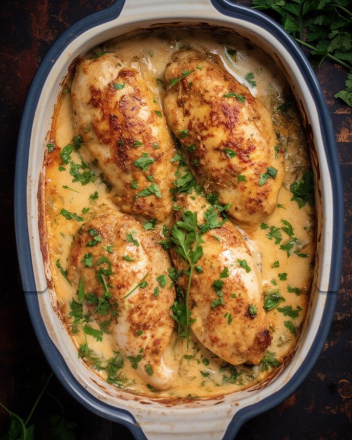 Serve your Baked Caesar Chicken on a bed of crisp romaine lettuce, alongside some garlic bread or a side of roasted vegetables, and consider adding a lemon wedge for a zesty touch. This dish pairs wonderfully with a glass of chilled white wine for a complete and delightful meal.