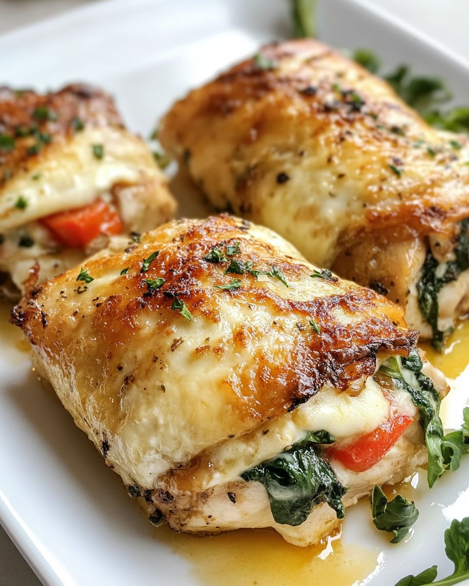 Roasted Chicken Stuffed with Roasted Red Pepper, Spinach, and Mozzarella