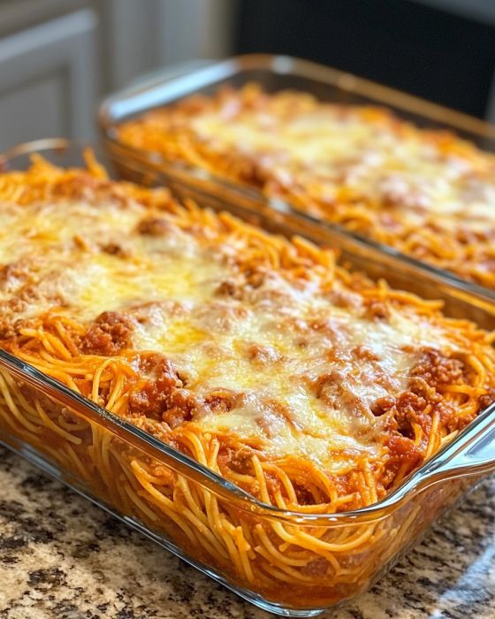 This spaghetti bake pairs wonderfully with a fresh green salad, garlic bread, and a side of steamed vegetables. For a bit of extra comfort, consider serving it with a warm bowl of minestrone soup. And don’t forget a simple dessert like apple crisp or brownies to round out the meal!