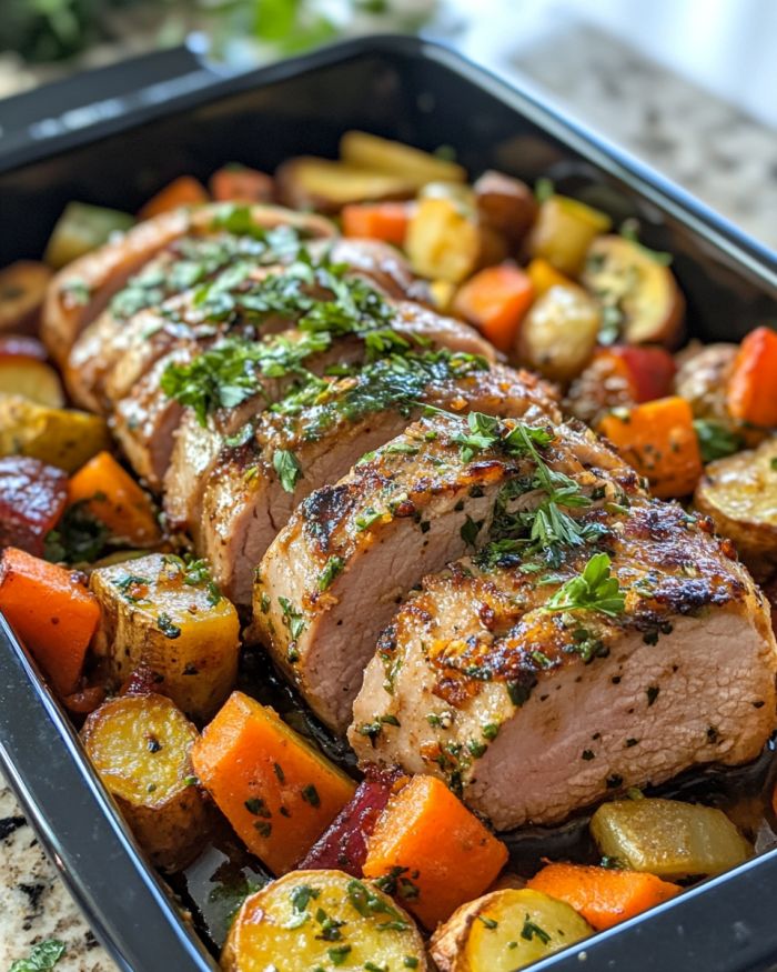 Herb-Infused Honey Garlic Pork Tenderloin with Roasted Vegetables