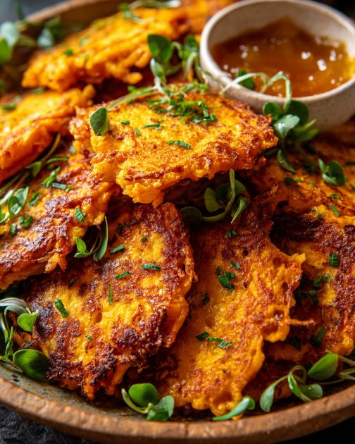 Sweet potato latkes are a delightful twist on the traditional potato pancake, bringing a touch of sweetness and vibrant color to the dish. Originating from Eastern European Jewish cuisine, latkes are typically enjoyed during Hanukkah, but their appeal extends far beyond this holiday. Sweet potatoes add a nutritional boost with their rich content of vitamins and fiber. This recipe pairs them with a homemade apple sauce, creating a harmonious blend of flavors that is both comforting and satisfying. Whether you’re exploring new culinary traditions or simply looking for a delicious side dish, sweet potato latkes are a versatile and tasty option.