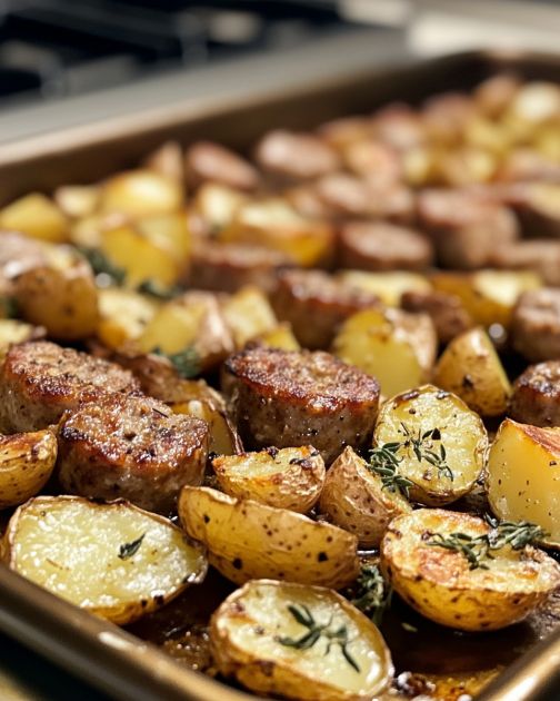 This dish pairs wonderfully with a fresh green salad dressed with a light vinaigrette, which adds a refreshing contrast to the rich flavors of the sausage and potatoes. You might also consider serving it alongside some crusty bread to soak up any delicious juices left on the plate. For a touch of sweetness, a side of roasted carrots or a simple apple slaw would complement the savory elements beautifully.
