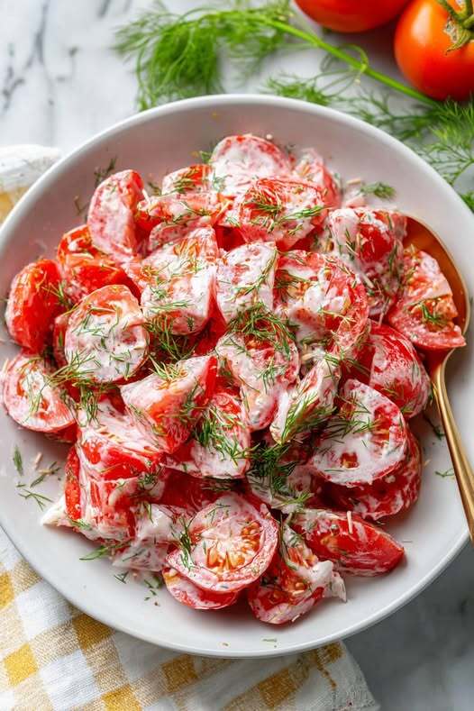 Say goodbye to bland greens and hello to this vibrant no-cook salad that’s bursting with flavor. Juicy tomatoes meet creamy garlic dressing, fresh dill, and a hint of tang in a dish that’s equally at home beside grilled meats or stealing the spotlight at your next potluck. It’s simple, satisfying, and seriously addictive.