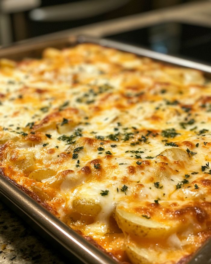 Scalloped potatoes, a classic comfort food, have roots in European cuisine, particularly in France and England, where they are known for their creamy, cheesy layers. This version, enhanced with herb-infused cream and the subtle sweetness of leeks, offers a modern twist on the traditional dish. Perfect for family gatherings or a cozy dinner, this recipe brings warmth and flavor to the table. The combination of Yukon Gold potatoes and a blend of cheeses creates a rich, satisfying dish that is both elegant and hearty.