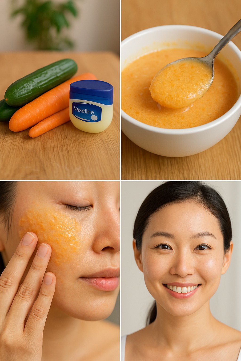 Looking for a natural, powerful anti-aging remedy that can smooth wrinkles instantly? With this Vaseline, carrot, and cucumber mask, you can achieve deep hydration, tight skin, and reduced fine lines for a glowing, youthful, and refreshed face!