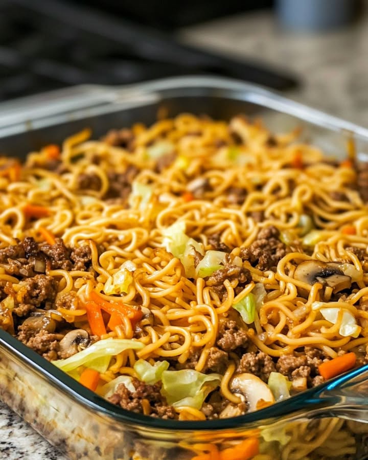 This Midwestern Beef & Noodle Bake is a delightful fusion of Chinese-American and classic American cuisine, bringing together the comforting elements of a casserole with the rich flavors of Chow Mein. It reminds me of the days when my grandmother would whip up hearty meals that filled the house with warmth and love. This dish is perfect for those who seek comfort in a meal that bridges the gap between tradition and a touch of the exotic. It’s a wonderful way to bring a bit of the past into the present, with flavors that are both familiar and exciting.