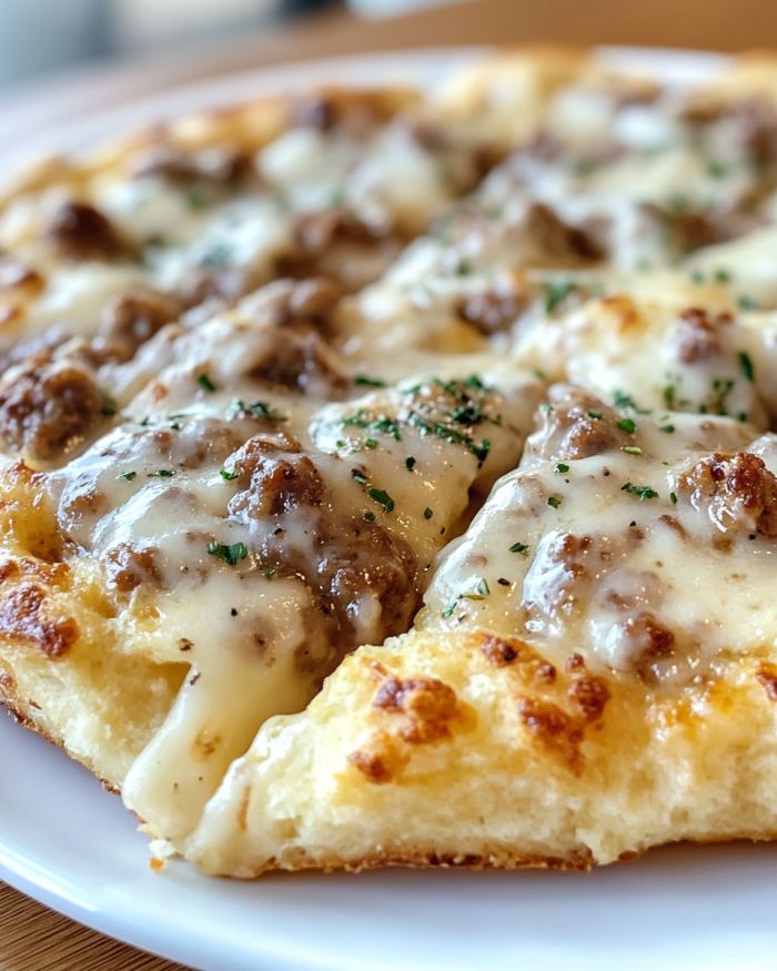 Biscuits and Sausage Gravy Breakfast Pizza